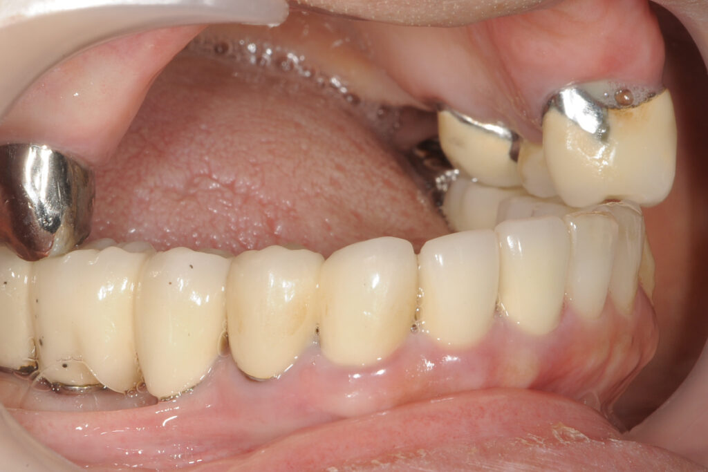 50代女性。下顎奥歯の欠損。片側咀嚼が続き、噛み合わせ全体への不安が強まっていました。他院でインプラント相談を行いましたが、「骨量が足りないため難しい」と説明され、治療を断念しました。
